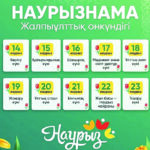 Биыл Наурыз мерекесінің әр күні төмендегідей Наурызнама мазмұнда ұйымдастырылады: 14 наурыз – Көрісу күні (Амал мерекесі)…