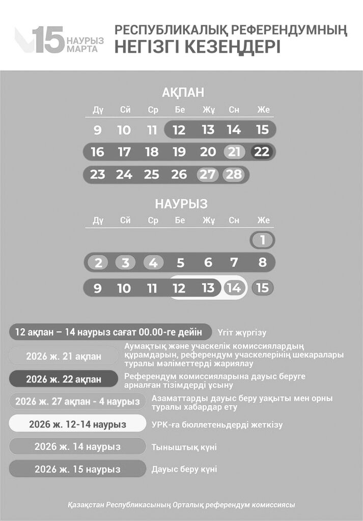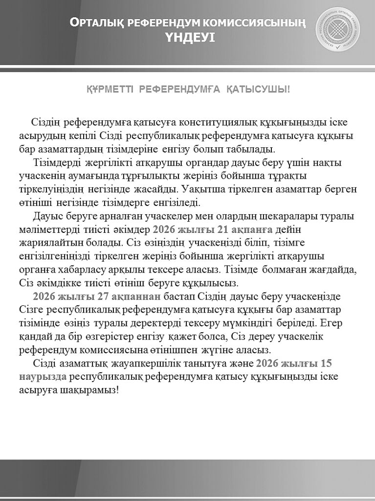 Облыстардың, республикалық маңызы бар қалалардың және астананың аумақтық референдум комиссиялары 2026 жылғы 17 наурыздан кешіктірмей