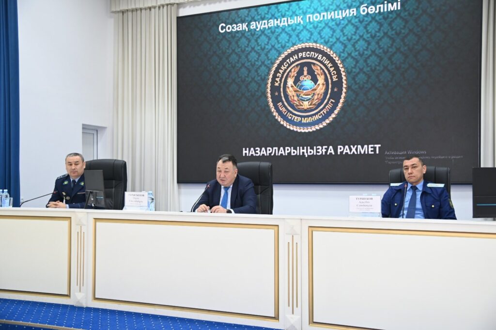 Созақ ауданы әкімдігінің мәжіліс залында аудандық полиция бөлімінің 2025 жылы аудан көлемінде қылмысқа қарсы күрес және қоғамдық тәртіпті қамтамасыз ету бағытында атқарған жұмыстары мен алдағы кезеңге жоспарланған міндеттері туралы есеп беру жиыны өтті.